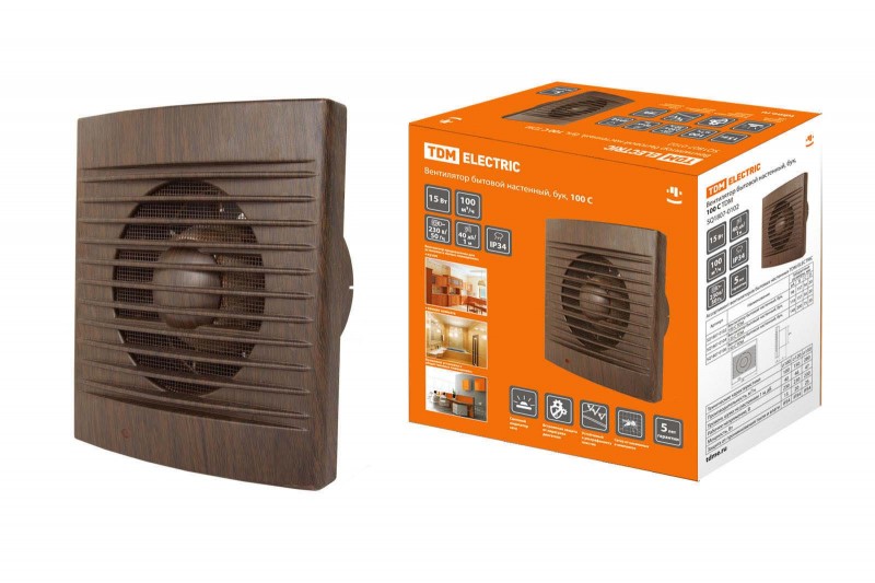 Вентилятор осевой, вытяжной 100 С «ЭКО» (бук) TDM/1