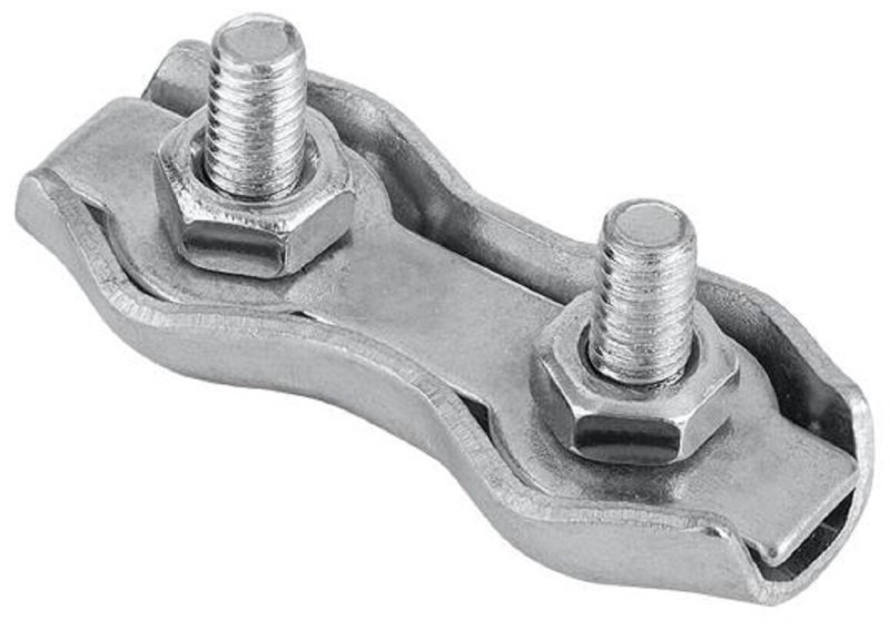 Зажим служит надежным фиксатором стального каната. Применение: вдоль зажима продевают канат и затягивают ключом.
