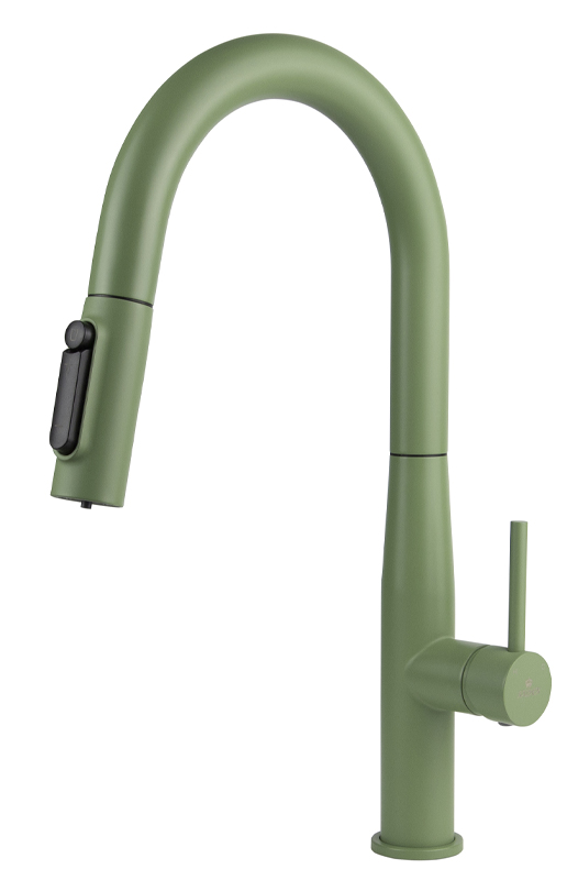 Смеситель KAISER Vita для кухни с вытяжной лейкой, под фильтр, Ø25 /Нержавейка /Зелёный