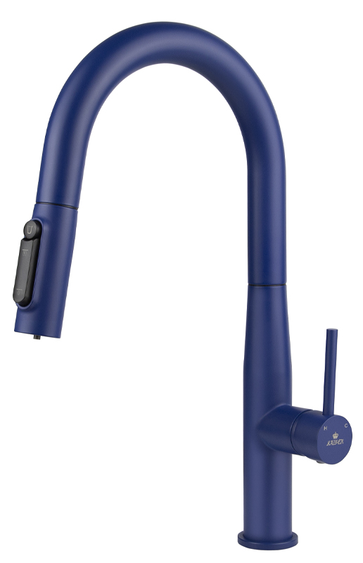 Смеситель KAISER Vita для кухни с вытяжной лейкой, под фильтр, Ø25 /Нержавейка /Синий