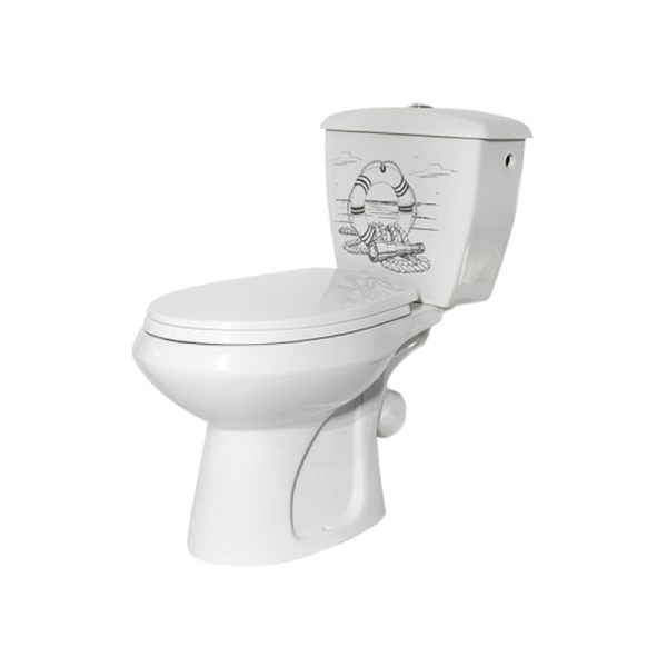 Унитаз-компакт «ОК» белый косой выпуск Элисса декор Спас. круг Стандарт смыв круговой антивплеск