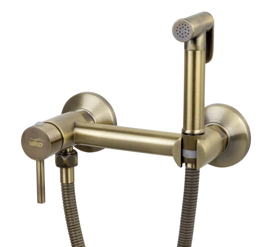 Смеситель VIKO настенный под биде с гигиеническим душем, однорукий Ø35, бронза (латунь)