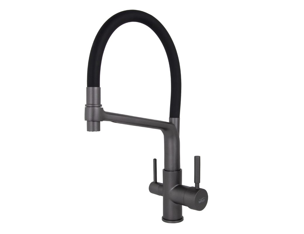 Смеситель VIKO кухня боковой под фильтр Ø35 черным гибким изливом, латунь, корпус: воронёная сталь (латунь)