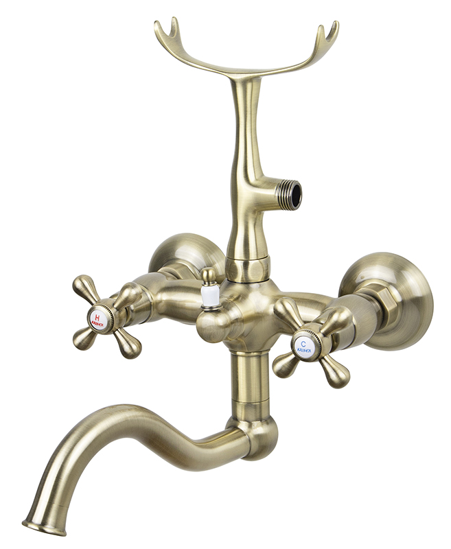 Смеситель KAISER Carlson Style для ванны к/н крест керамика (керам. дивертор)(бронза)