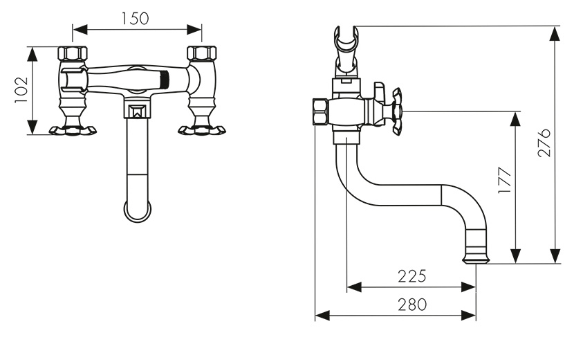 Смеситель KAISER Carlson Lux ванна крест керамика (картридж/переключатель)