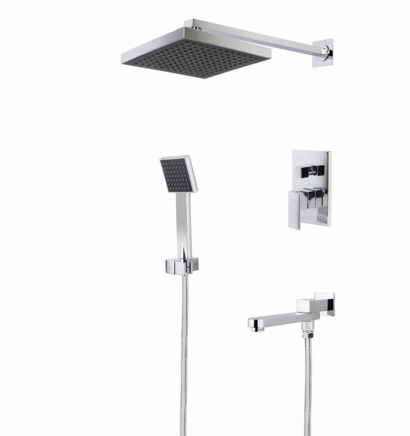 Смеситель KAISER Sonat Душевая система с изливом скрытого монтажа (стац. лейка 200х200) /Хром