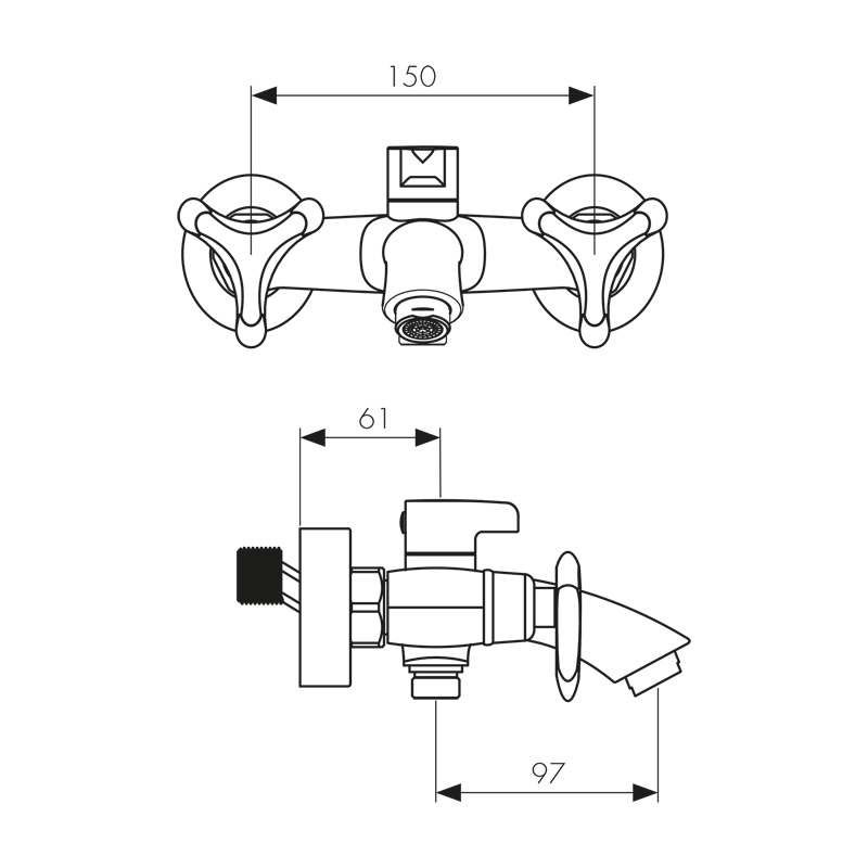 Смеситель для ванны с двумя рукоятками и коротким изливом