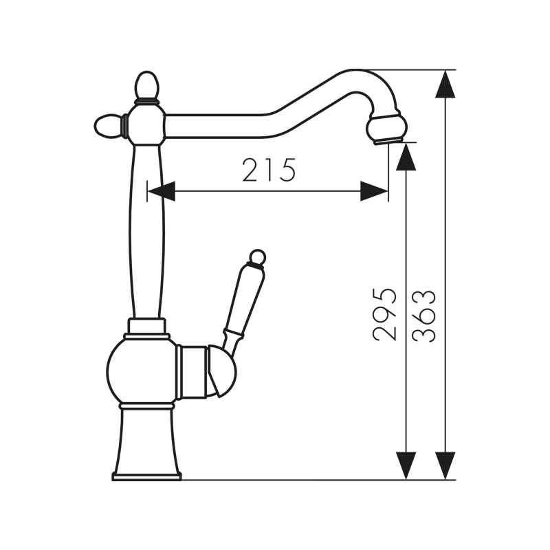 Смеситель KAISER Wood кухня, боковой Ø35