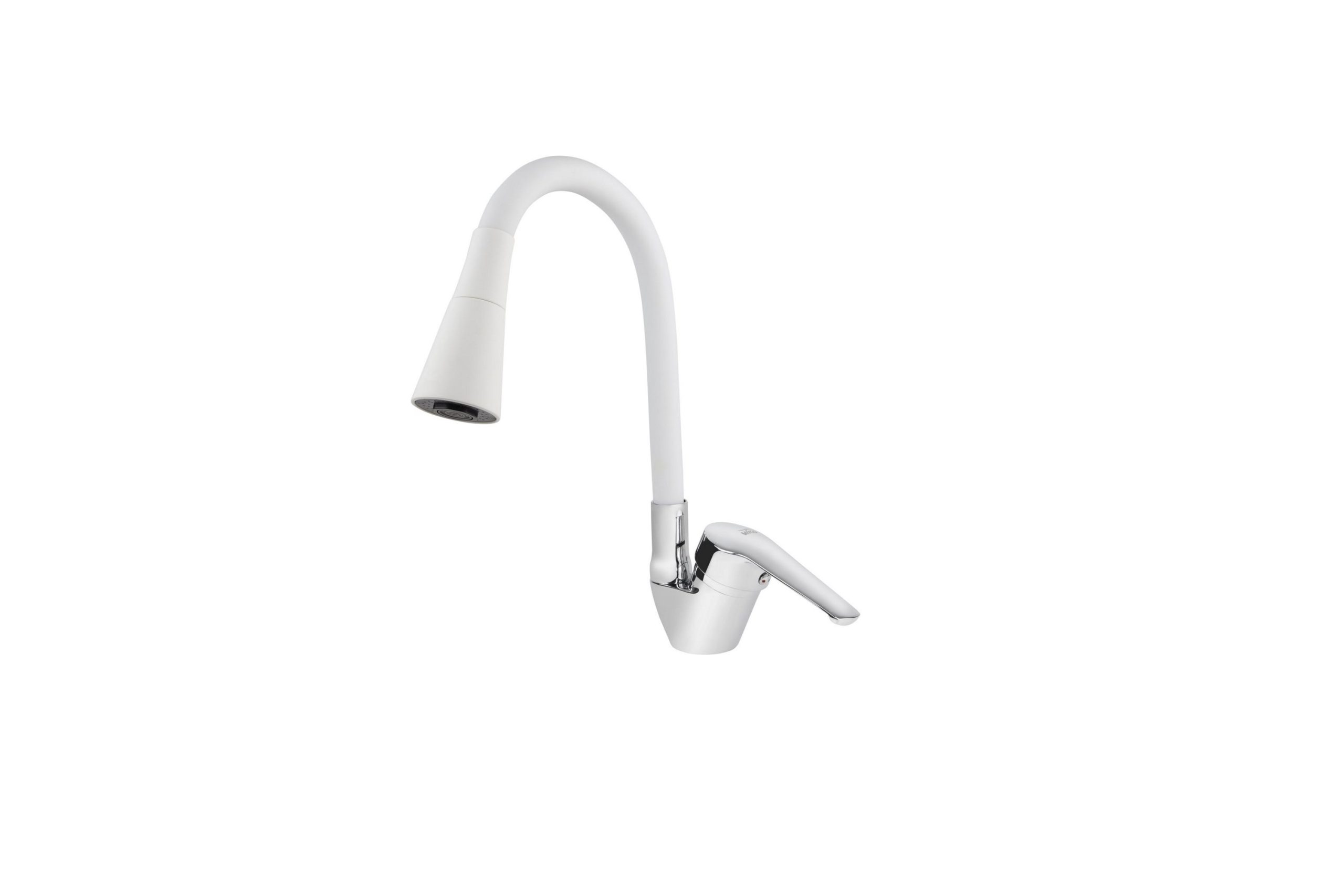 Смеситель VIKO кухня боковой Ø40 с гайкой белым гибким изливом (2-jet)