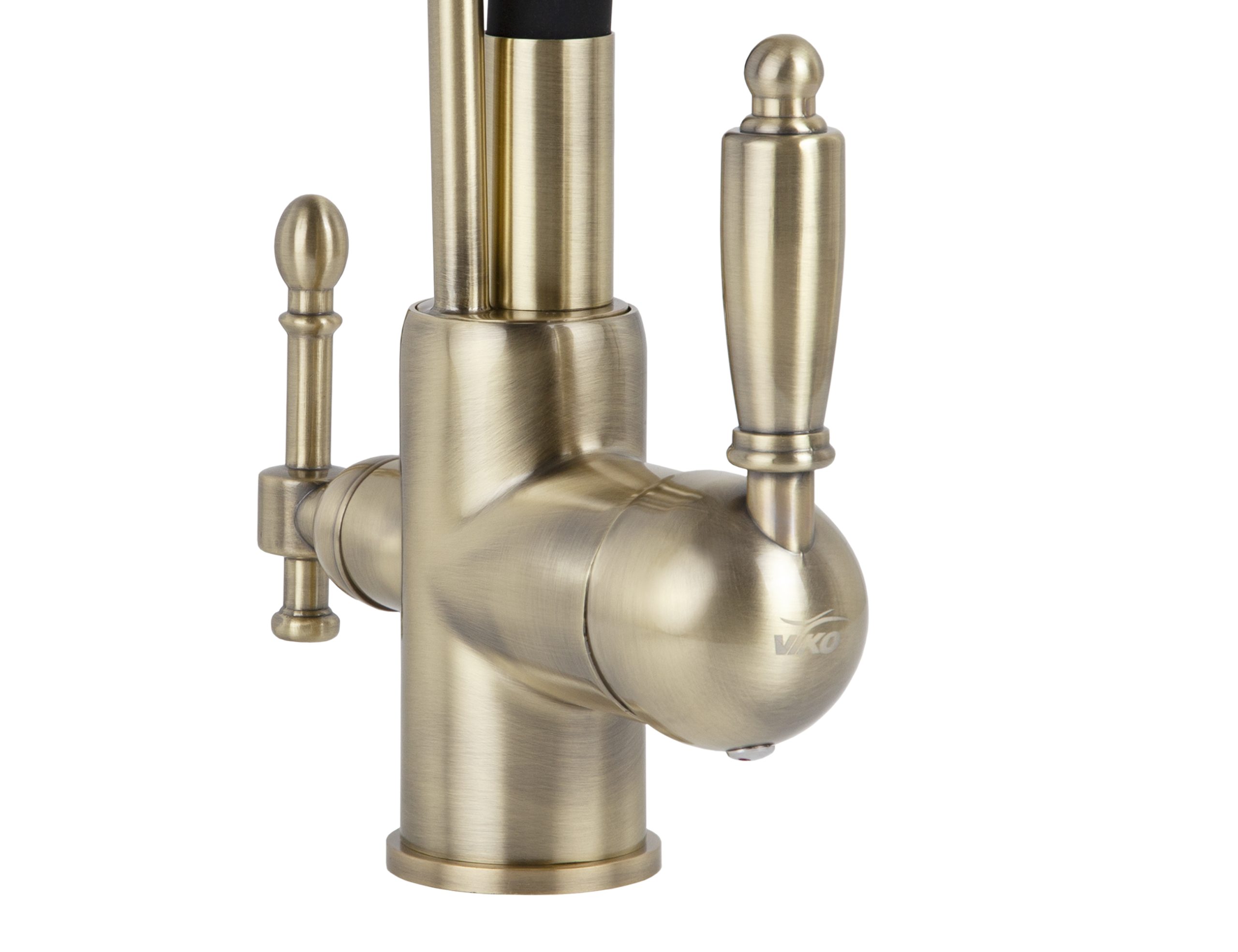 Смеситель VIKO кухня боковой под фильтр Ø35 с черным гибким изливом, корпус: бронза (латунь)