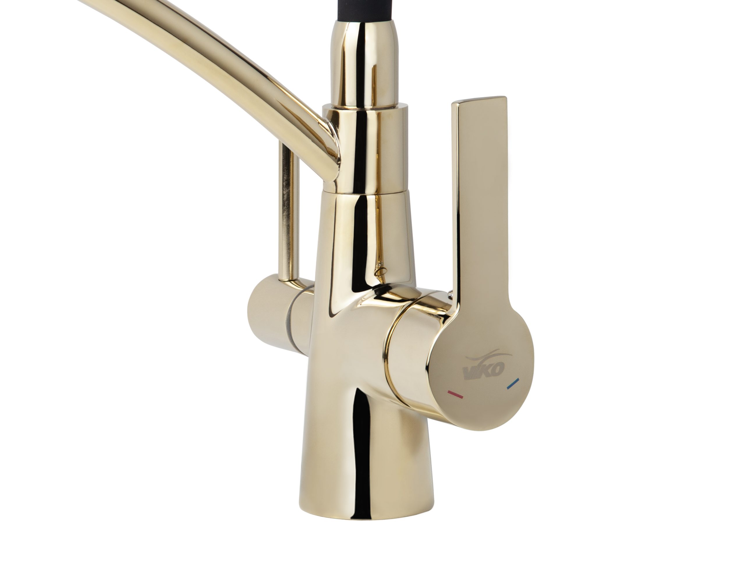 Смеситель VIKO кухня боковой под фильтр Ø35 с черным гибким изливом, корпус: бронза