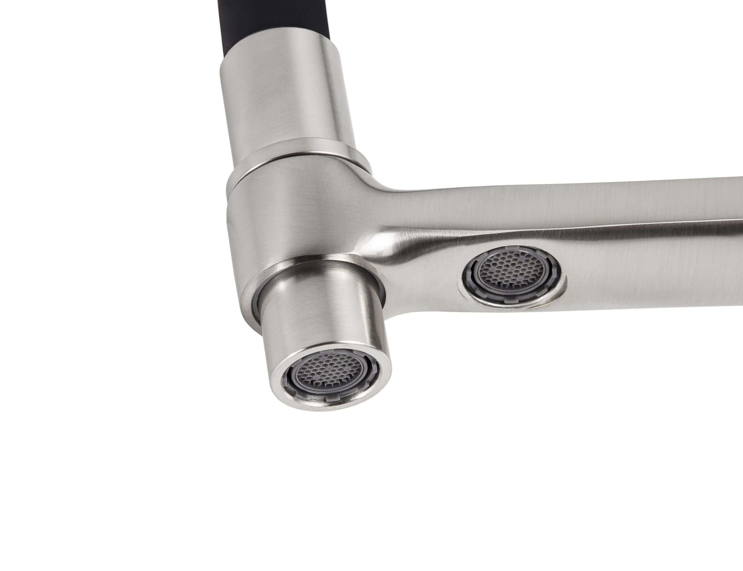 5605 VIKO кухня боковой под фильтр Ø35 (латунь) с черным гибким изливом Silver
