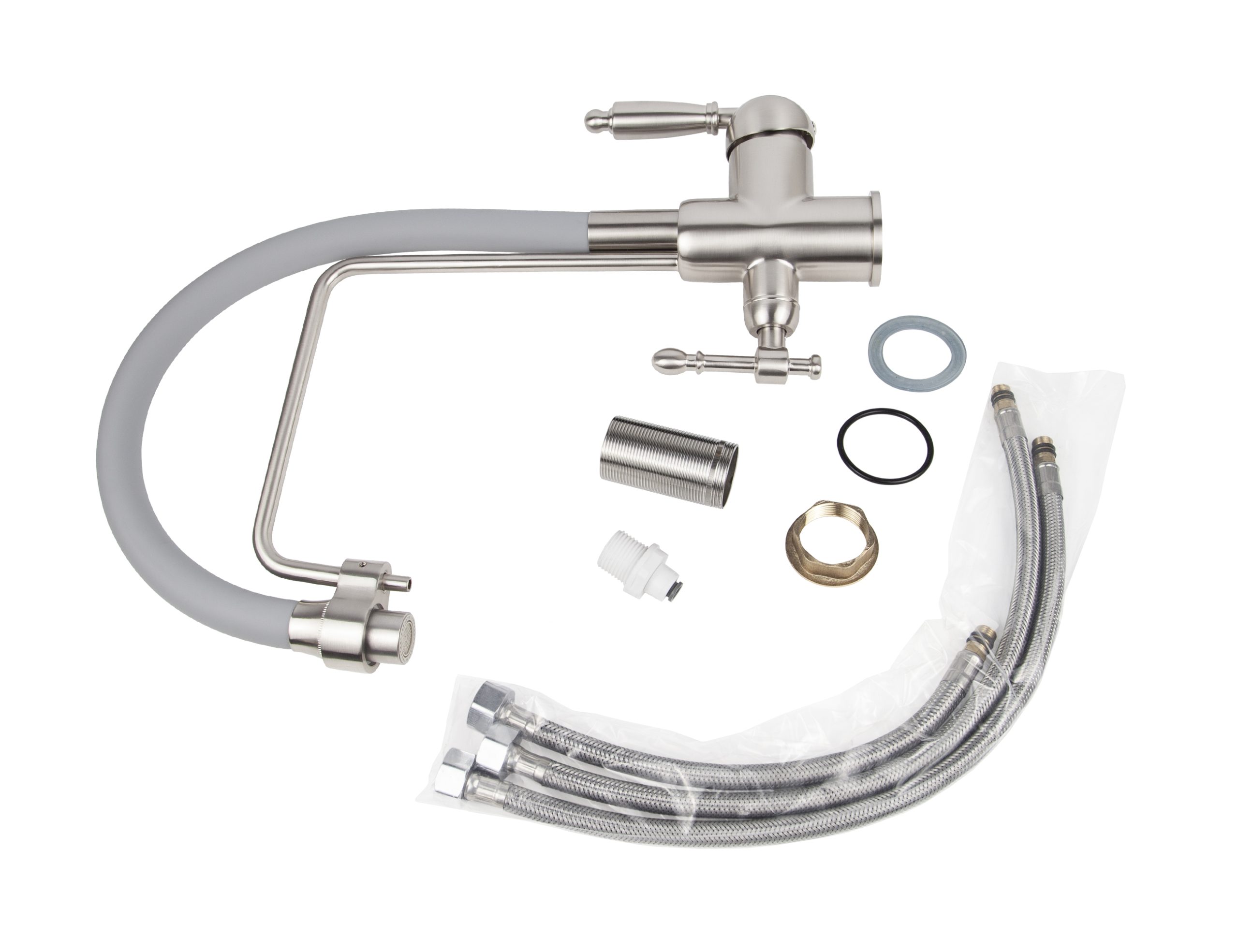 Смеситель VIKO кухня боковой под фильтр Ø35 с гибким серым изливом, латунь, серебро