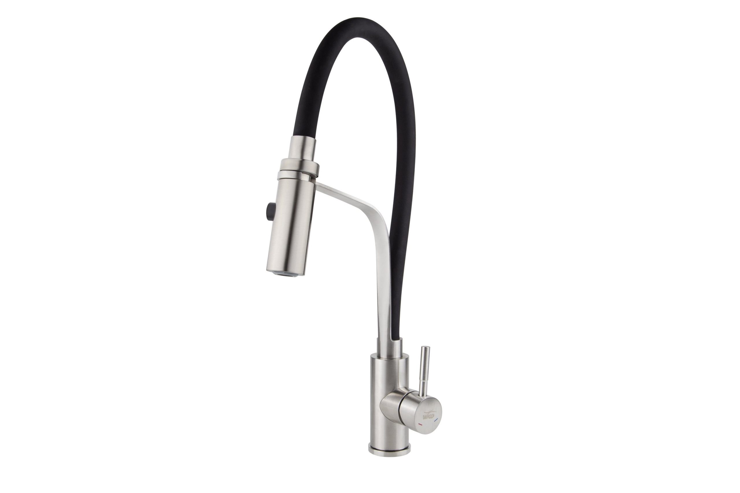 Смеситель VIKO кухня боковой с чёрным гибким изливом Ø35 с гайкой, (нерж.сталь), корпус: серебро
