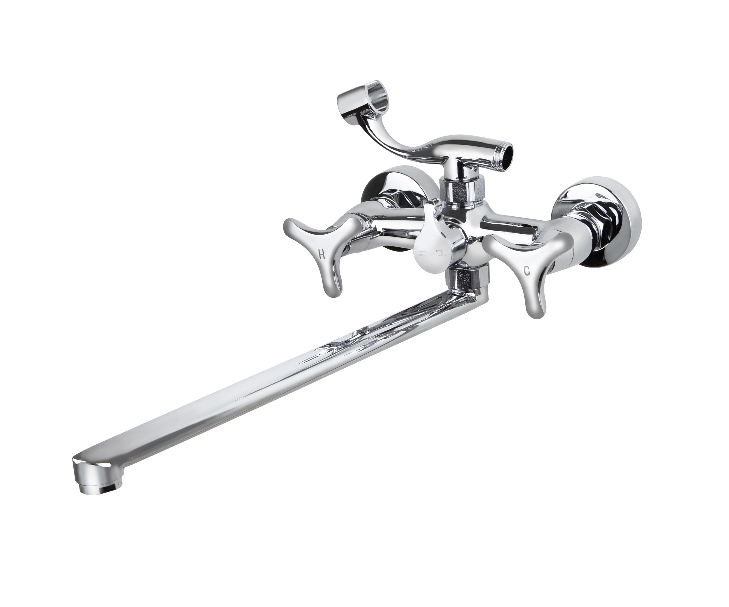 Смеситель VIKO ванна крест керамика (карт/переключатель) плоский излив 33см